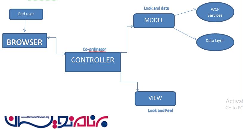 زمانی کاربر انتهایی یک درخواست مثل : اضافه کردن یک فروشنده ، رفتن به صفحه اصلی ، غیره ، را ارسال می کند این درخواست ابتدا به Controller میرود . اگر Controller به درخواست OK داد ، اجازه جستجو برای model مناسب برای آن را میدهد و سپس به view باز میگرداند . در دیاگرام سوم ، لایه view میتواند ASPX view یا Razor view ، یا Engine view که بیشترین استفاده را در معماری MVC دارد ، باشد . بعد از جستجو برای model مناسب ، به Controller می رود . حال ، این وظیفه Controller است که اطلاعاتی را که از model به view آمده است را ارسال کند ، که میتواند این Razor view یا ASPX view باشد که این یکی از مزیت های معماری سه لایه است .
