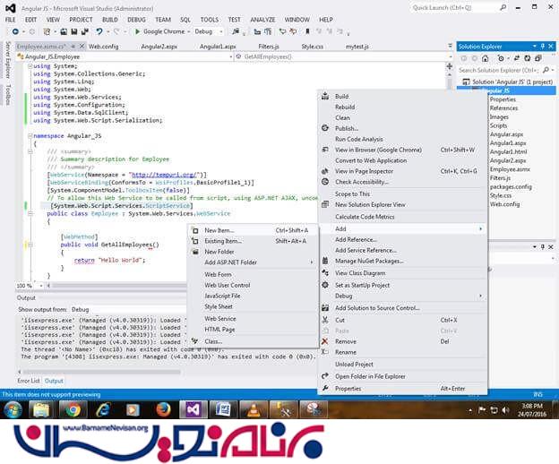 استفاده از وب سرویس ASP.NET در AngularJS