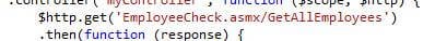 2. $http.get('EmployeeCheck.asmx/GetAllEmployees').then(function(response) {
