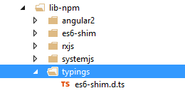در Solution Explorer ، تمام بسته های مورد نیاز کپی می شوند .در این قسمت لازم است نوع es6-shim را تعیین کنیم ، اگر نوع آن را مشخص نکنیم با این خطا مواجه می شوید : "Cannot find name 'Promise “