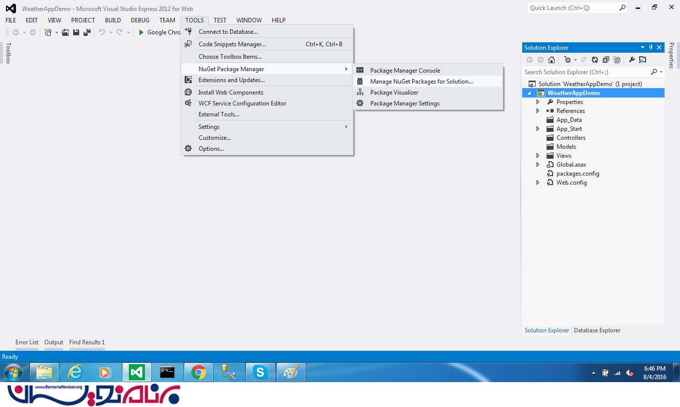 1. nuget package manager را باز کنید .