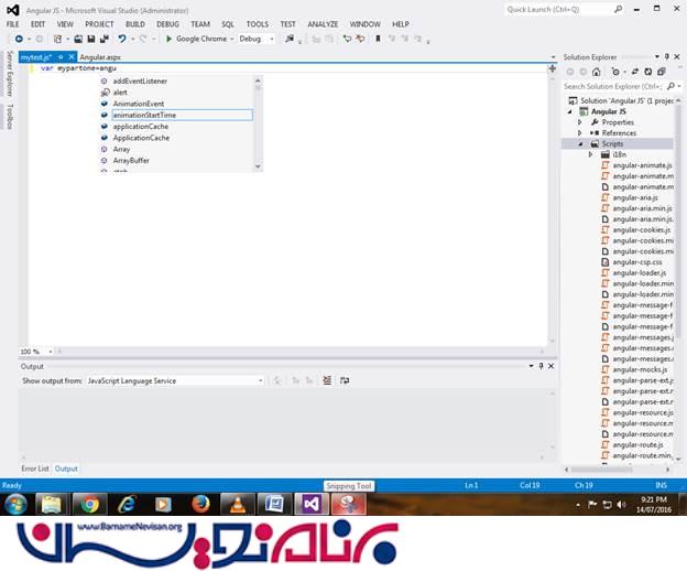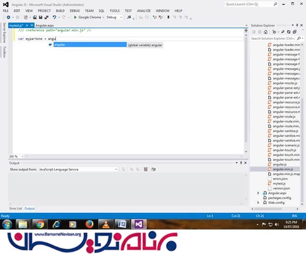 زمانی که شروع به ساخت یک ماژول میکنیم ، باید توجه داشته باشید که intellisenece ی برای angularJS در اختیار شما نخواهد بود.