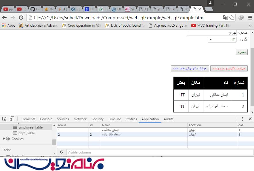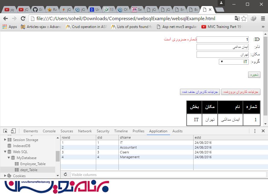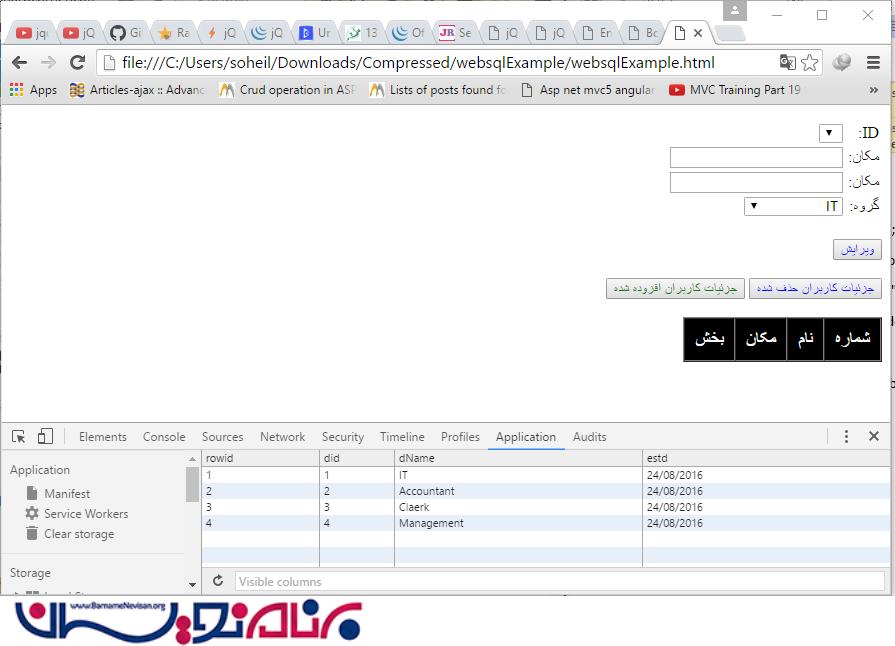 عملیات CRUD با استفاده از WebSQL در HTML و jQuery