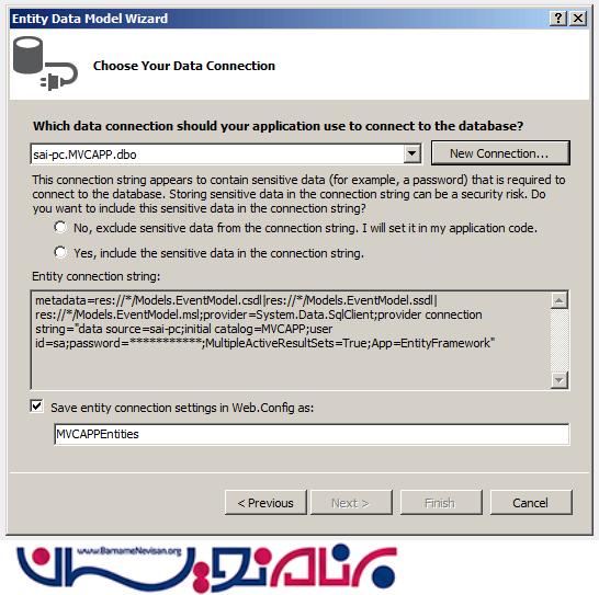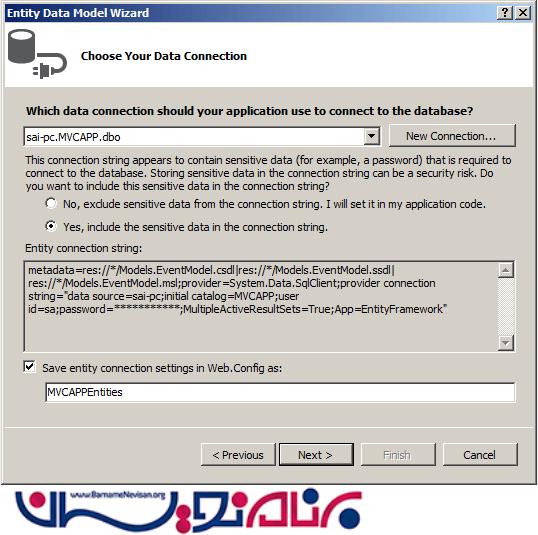 گزینه Connection string را YES قرار میدهیم. که در فایل Web.Config اضافه میشود. و در آخر NEXT را میزنیم.
