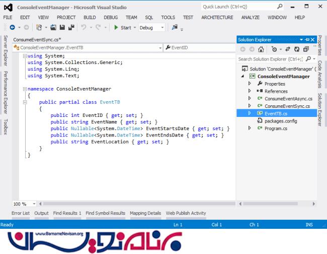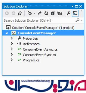 بعد از ساختن console Application ما از Event Web API که قبلا ساخته بودیم استفاده خواهیم کرد. برای انجام این کار کلاسی با نام “ConsumeEventSync” میسازیم.
