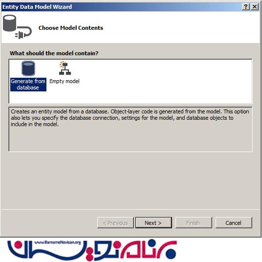 بعد از OK کردن پنجره ی جدید Wizard of Entity Data Model باز میشود.