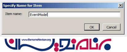 بعد از انتخاب ADO.NET Entity Data Model پنجره ای با اسم “Specify Name for Item”.باز میشود.