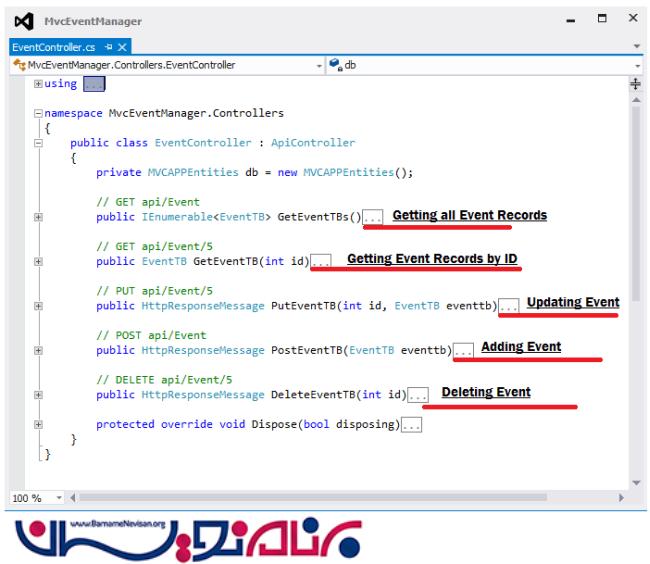در متد Delete ما نیاز به ست کردن EventID داریم. که ما میخواهیم عمل خذف را انجام دهیم.