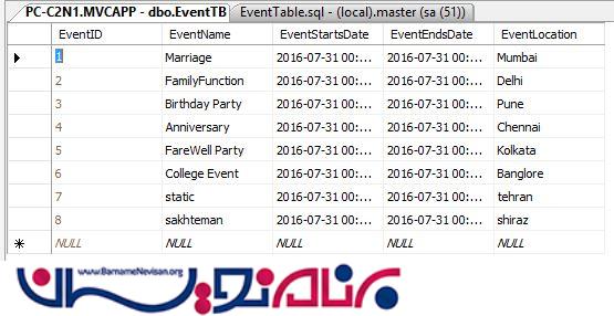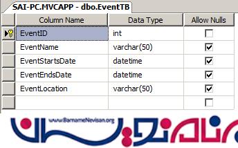 ما یک Database با نام MVCAPP داریم. در داخل آن ما جدولی به نام EventTB داریم. که ما برای ساخت از آن استفاده میکنیم.
