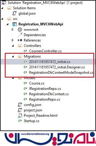 اساسا دستور اول ، فایل migration را با فرمت نام (<date>_<migration name>) اضافه میکند بنابراین ما فایلی با نام initial.cs _201411172303154 در زیر شاخه MIGRATIONS در پروژه خواهیم داشت .