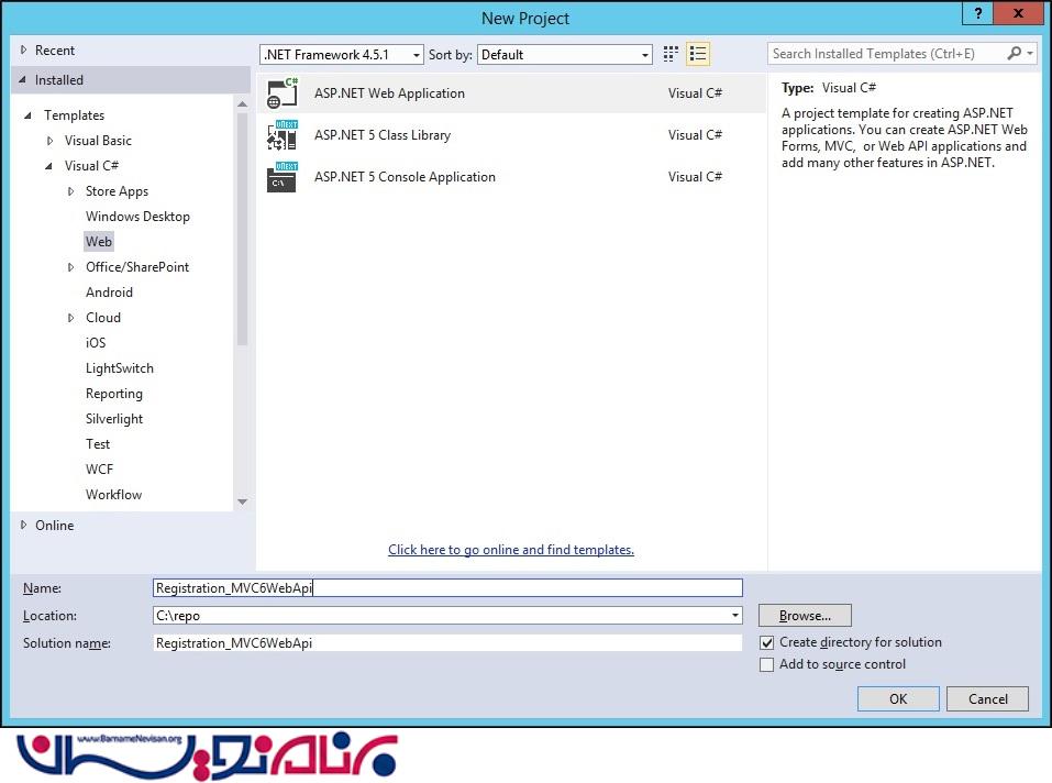 ASP.Net web Application انتخاب کنید .