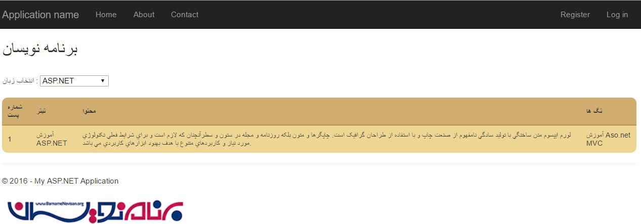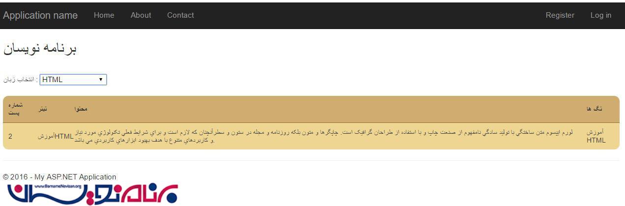 در کنار DropDownList نمایش داده میشوند که بر پایه انتخاب مقدار DropDownList هستند. جزئیات وبلاگ با جدول html با استفاده از jQuery متصل خواهند شد.