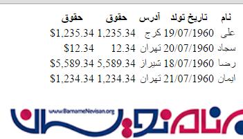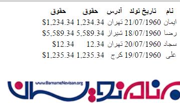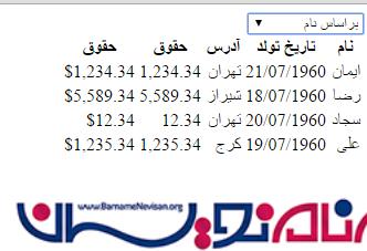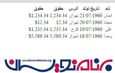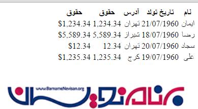 اکنون اگر برنامه را اجرا کنیم داده ها به شکل زیر نمایش داده می شوند.