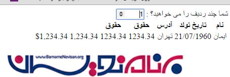 به صورت پیش فرض یک رکورد نمایش داده می شود ولی با تغییر عدد داخل textbox تعداد رکورد ها نیز تغییر می کند.