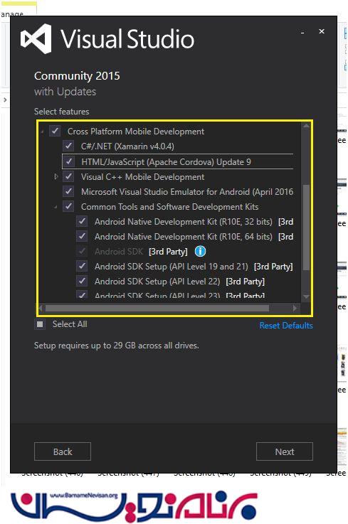 سه شنبه 30 شهریور 1395در این مقاله قصد داریم که نحوه ی نصب Visual Studio با Xamarin را که شامل همه ی SDKs های Android است را آموزش دهیم که ما میتوانیم با استفاده از Xamarin.Forms چندین پلتفرم(cross platform) که شامل iOS, Android, Windows هستند را گسترش دهیم.