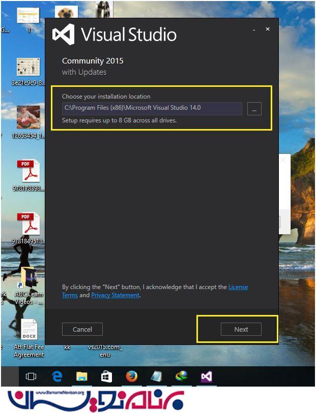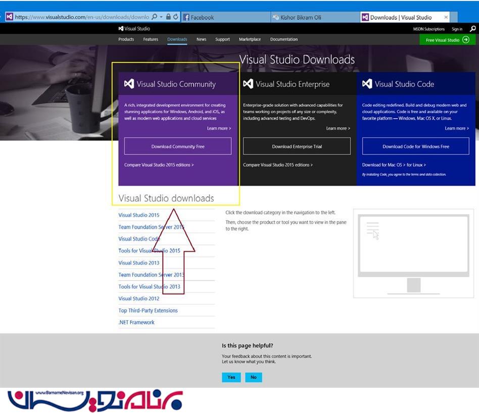 رفتن به سایت Visual Studio و نسخه ی رایگان Visual Studio 2015 Community را دانلود میکنیم.