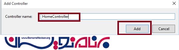 در آخر نام کنترلر خود را مشخص می کنیم و بر روی ok کلیک می کنیم .