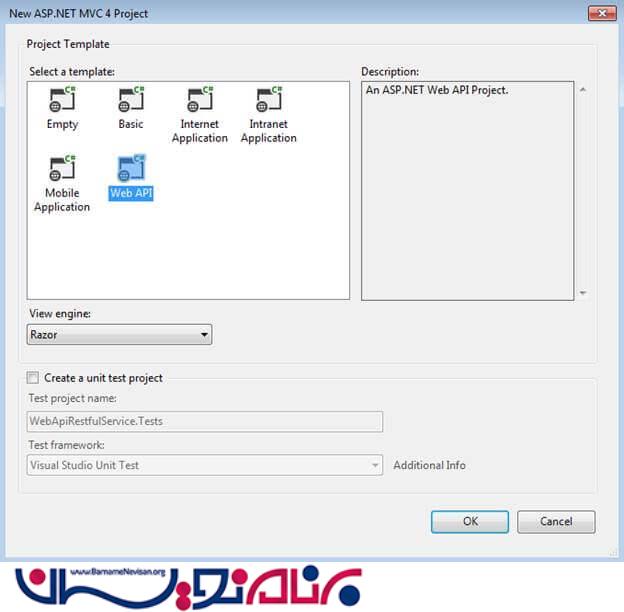 1.یک پروژه از نوع Web API ایجاد می کنیم .
