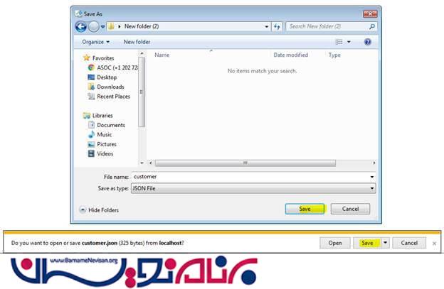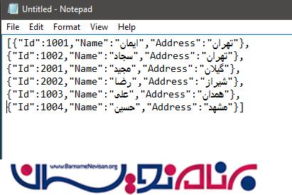 6.پروژه را اجرا می کنیم .سرویس Web API مقدارها را با فرمت JSON ، بازمیگرداند.