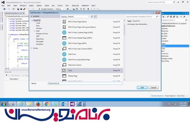 سرویس Restful با استفاده از MVC WEB API