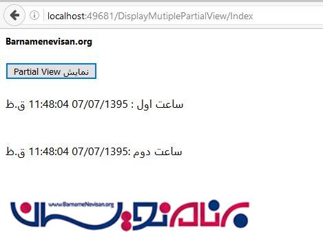 کد اکشن در زیر است. ما دو partial view اضافه کرده ایم.عموما ما partial view را با object ها به فرمت srting تبدیل میکنیم.