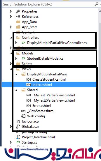 مرحله اول : ساختمان اصلی برنامه تان را بسازید:،view،partial views ,model