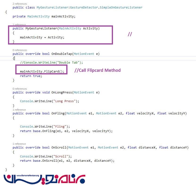 مرحله 14- MyGestureListener را باز کنید و کدهای زیر را در آن اضافه کنید.