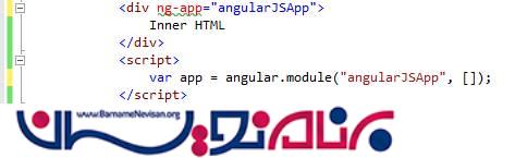 به یاد داشته باشیدکه ماژول ها برای تعریف برنامه استفاده می شوند.شروع یک برنامه AngularJS با تگ ng-app شروع می شود. این قسمت شامل قسمت های مختلف برنامه می شود. مانند: کنترلر برنامه