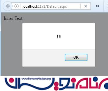 به محض این که نرم افزار را اجرا می کنیم ،در صفحه خروجی تصویر “directive1” را مشاهده می کنیم ، که یک alert نمایش داده می شود .