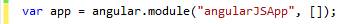 متغیر AngularJSApp با یک عنصر HTML و با کمک دابرکتیو ng-app به برنامه AngularJS اختصاص شده است . ما میتوانیم یک ماژول با استفاده از API تعریف کنیم که نحوه کار در زیر نشان داده شده است .