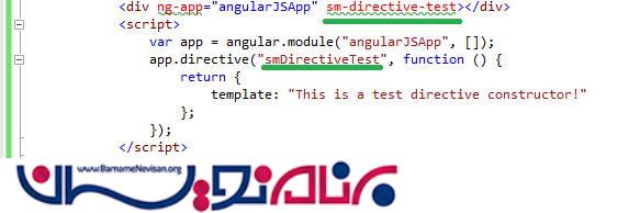 در مثال زیر Directive سفارشی شده ‘SM-DIRECTIVE-TEST’ را اجرا کرده ایم .