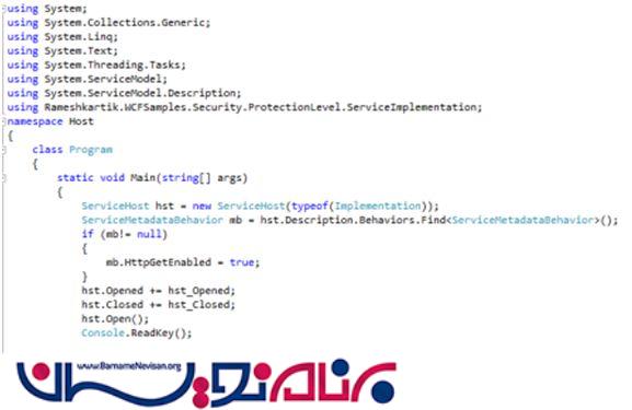 آسان ترین راه برای میزبانی سرویس شما استفاده از Self Hosting است که می تواند فقط به وسیله ی یک برنامه کنسول، وب فرم و یا یک Windows Service ایجاد شود. توسعه دهنده باید یک نمونه از Service Host class که از system.servicemodel مشتق شده ، بسازد . Service Host زمانی باز می شود که همراه با فایل های خودش نمونه سازی شود. یک بار که Service Host باز شود، فرآیند کاری را به گونه ای تنظیم می کند تا بتواند پیام ها را از سمت کاربر دریافت کند و آن ها را مورد پردازش قرار بدهد.