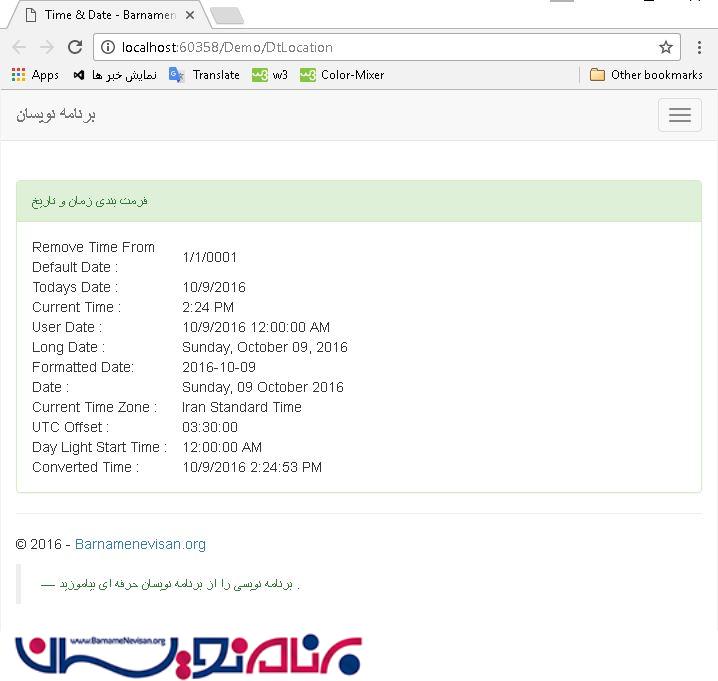 فرمت های Date Time در ASP.Net MVC