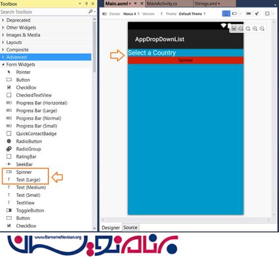 ایجاد یک DropDownList با استفاده از Widget Spinner