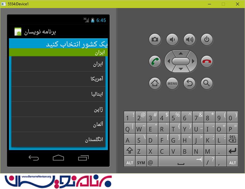 در این کد ، ما یک نمونه از Spinner ساخته ایم و در رویداد Spinner´s ItemSelected با استفاده از یک eventHandler، نام کشوری که انتخاب شده است را با استفاده از یک toast نمایش داده ایم.