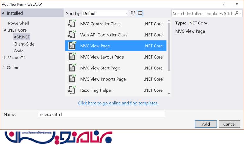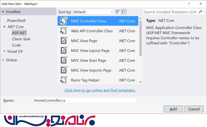 -افزودن MVC Controller class با نام HomeController.cs به پوشه Controllers
