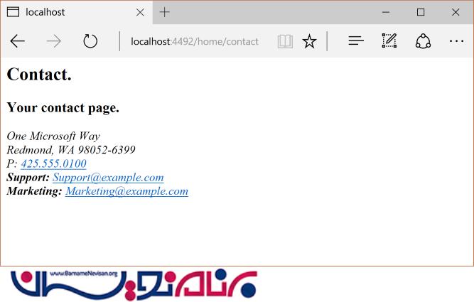 -اجرای پروژه ASP.NET Core و امتحان تمامی متد های آن. در فایل هایی که از پروژه ASP.NET MVC کپی کرده ایم ازفایل Layout یا Style ها خبری نیست به همین دلیل صفحات پروژه تنها شامل محتوا می باشند . حال برای مشاهده آن ها میتوان آدرس های زیر را در مرورگر خود وارد کنید :
