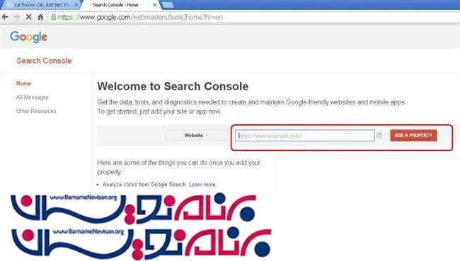 URLسایت خود را وارد کنیدکه این نشان میدهدکه شما میخواهید Search Console را فعال سازی کنید و در اخر بر روی "ADD A PROPERTY" کلیک کنید.