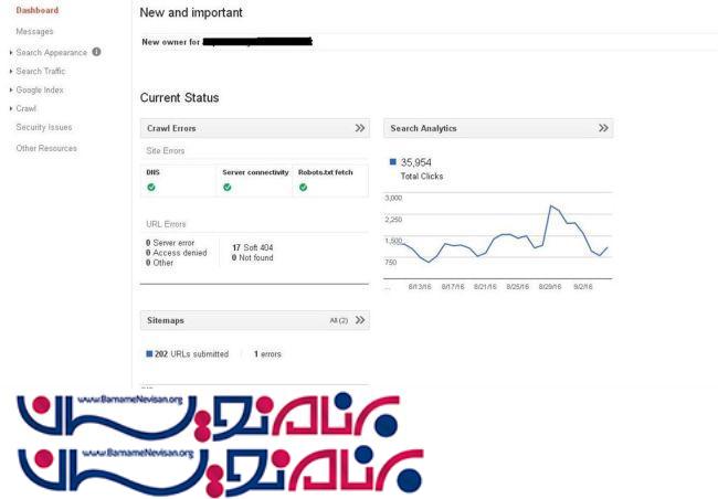 حال شما به صفحه داشبورد Search Console(کنسول جستجو) هدایت میشوید .