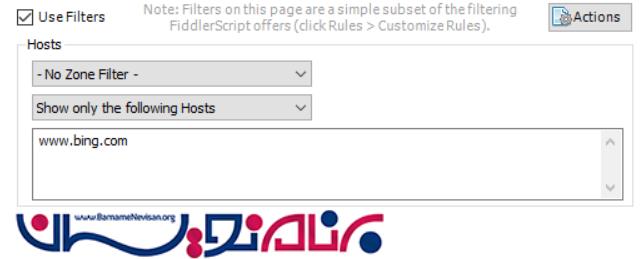 4-در ناحیه ی filters شما می توانید سایت هایی که می خواهید را فیلتر کنید تا دسترسی به url های خاصی بسته شود.