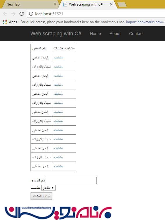 همچنین ما یک فرم دیگر نیز ایجاد می کنیم تا بتوانیم از طریق آن ، ارسال داده ها را تست کنیم.
