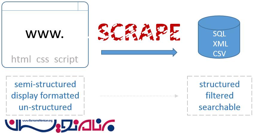 وقتی که ما با منابع داده ای گوناگونی سرو کار داریم، عموما به داده های ساختار یافته یا نیمه ساختار یافته ای که در SQL ، Web-service ها و یا CSV ها نمایش داده می شود، توجه می کنیم. اگر چه حجم داده ای که در واقع در دنیای بیرون وجود دارد، بسیار زیاد و گسترده است و بخش کوچکی از آن ها در قالب وب سایت ها به ما نمایش داده می شود. مشکلی که در این زمینه وجود دارد این است که ما نمی توانیم به نتیجه دقیق و مشخصی با استفاده از داده های درون وب سایت ها برسیم. زیرا داده ها در این حالت، درون ساختار پیچیده ای از css و html قرار دارند. وظیفه ی web-scraping (خزیدن در وب ) این است که داده ها را از وب سایت ها با استفاده از اتوماسیون کد بگیرد و در فرمتی نشان بدهد که ما بتوانیم با آن ها کار کنیم.