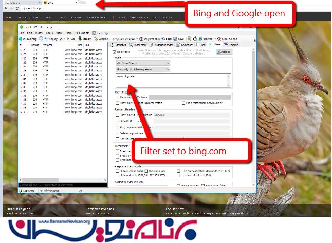 برای تست این مورد، می توانید در شکل زیر ببینید که من هم Bing و هم Google را باز کرده ام. اما چون فیلتر را بر روی Bing قرار داده ام، فقط موارد مربوط به آن نمایش داده می شوند: