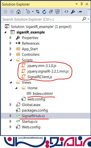 • SignalR به jQuery وابستگی دارد، پس به کتابخانه jQuery هم نیاز دارید.