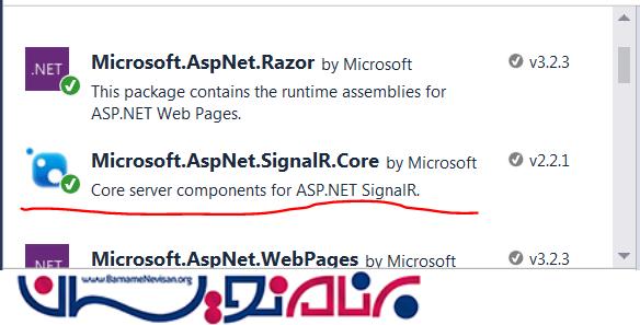 برای استفاده از Signalr در پروژه ASP.NET MVC ، شما نیاز به اضافه کردن وابستگی های dependency در NuGet packages دارید.
