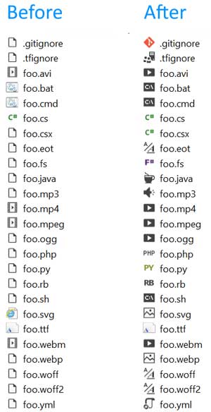 همچنین به File Icons pack نیز نگاهی بیندازید که فایل آیکون های ترسیمی جدید و یا پیشرفته را برای تعداد زیادی از انواع فایل ها فراهم می کند. همچنین یک ویژگی وجود دارد که می توانید نوع هایی را که آیکون ندارند، به project GitHub repo گزارش بدهید.