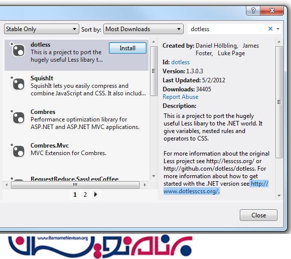 2. از طریق Nuget پکیج dotless را به پروژه خود اضافه کنید .