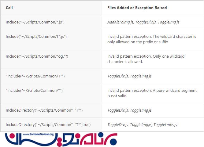 جدول زیر فایل هایی که توسط WildCard به bundle اضافه شده اند را نمایش میدهند.