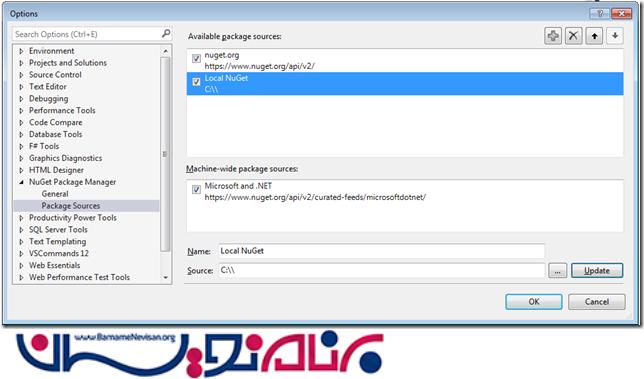 سپس شما میتوانید Local NuGet Source خود را که ذخیره کرده اید اضافه کنید