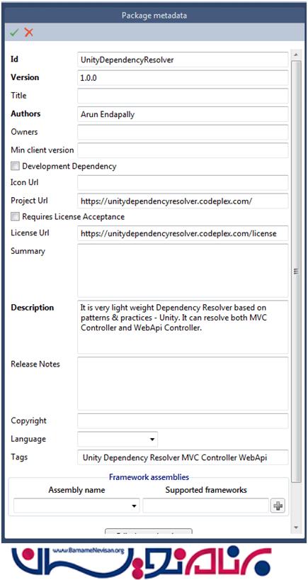 بعد از آن شما پیکربندی را انجام داده اید و میتوانید آن را ذخیره و یا به طور مستقیم در Nuget.Org پابلیش کنید.